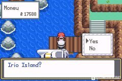 打完馆主回到Suki镇,之前的船可以乘了,来到take岛,岛上是第一个徽章的地点,门口拿汽水,天王是草系的妙蛙草,对战赢获得徽章和种子机关枪,主角还是挺狂的 对战完坐船去Irio岛,选yes no Irio岛上有卖草药和哨子的