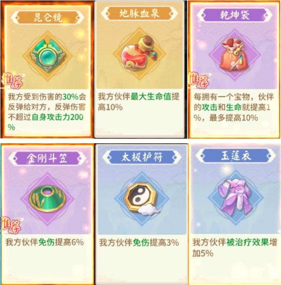 推荐昆仑镜、地脉神泉、乾坤袋、金刚斗笠、太极护符、玉莲衣