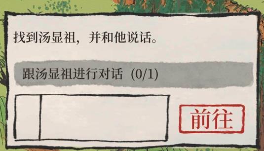 江南百景图怎么和汤显祖对话? 参考答案: 1.左下角的任务栏往后滑,有驱散迷雾的任务,驱散迷雾后就可以跟NPC对话了。 2.下面领奖励的要及时领,不领完不会更新任务。 老友网www.andlaou.com免费为你分享