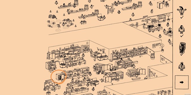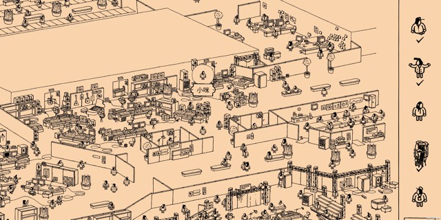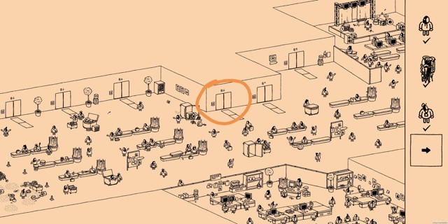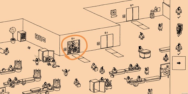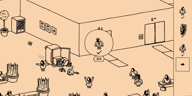 最后一个是在电梯区域右数第三个电梯里,每次打开里面的人都不一样,打开是有大号的点一下。