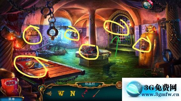 古书,手指——用箭——完成寻物游戏——进入刑房