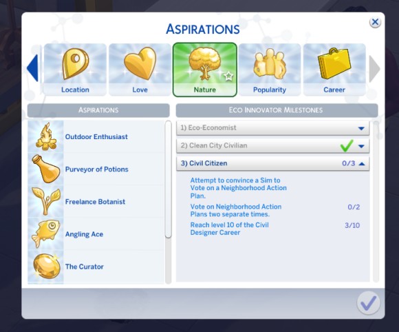 完成【环保先驱】抱负获得奖励特征——【个人影响力】,该特征可以让小人指定其他小人,让周围的人为他喝彩或者厌恶他。