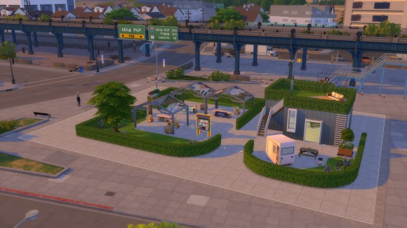 这个社区还有一栋公寓楼。虽然对面那栋看起来也是公寓楼,但是那是假公寓楼。 一个一卧室公寓,一个两卧室带阳台…… 结果你告诉我这个阳台不是我的?这是欺诈! 公寓楼会随着社区现代化建设而改变。 车站前面是坎妮弗车站的社区中心。 现代化公寓楼预览。 左上角的社区是阴森采石场——这里曾经是淘金者的天堂,而如今则是极光爱好者的天堂。