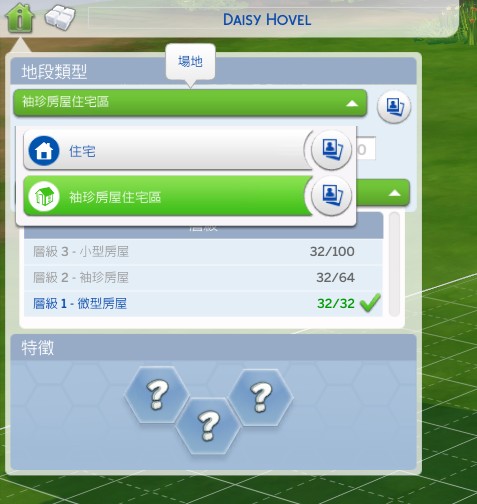 袖珍房屋住宅区是《温馨小居》新增的地段类型。在任何住宅或者空白地段上,玩家都随时可以在左上角选择全新的住宅地段类型“袖珍房屋住宅区”。