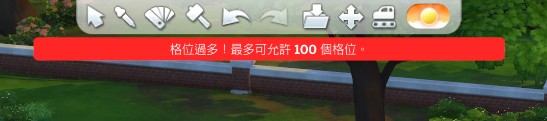在建造该地段的过程中,屏幕正上方的天蓝色横条会显示你所占用的格子数量;随着格子数量超过32、64和100,该条会分别变为宝石蓝色和深蓝色;当格子数量超过100的时候,蓝色的条会变为红色,玩家无法退出建造模式,必须更换为普通住宅或者是将格子数限制在100格子以下才能退出建造模式。