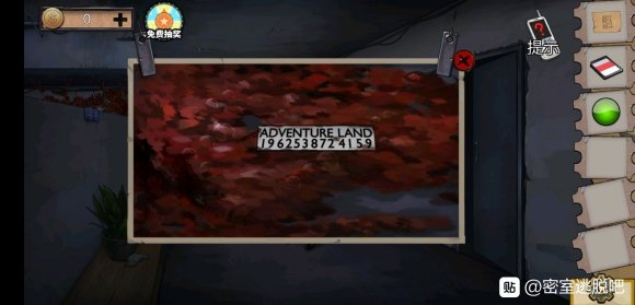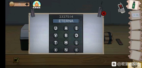 上二楼过道边红色垃圾里有一张纸(见下图1),一楼盒子密码锁上面的数字2327514(见下图2),对照那张纸就能找到相对应的字母ETERNAL,这就是开锁密码。