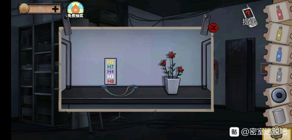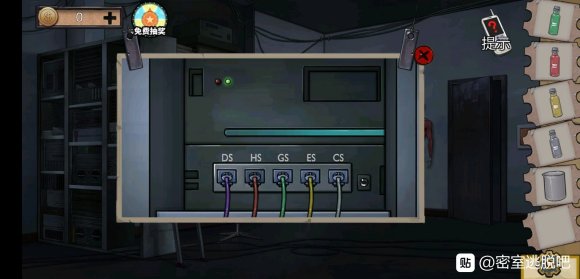提示见下图1墙上的彩色数字。首先,这些数字按英文字母表排序找到对应的字母,例如第一个5是黄色的,对应字母表排在第五的“E”,从而得到黄线插在“E”接口上。而第二个绿色的数字7,对应字母表中的“G”,所以绿线插在“G”接口上。后面三个接线同理,最终得到下图2的插线接通交换机。