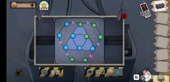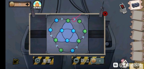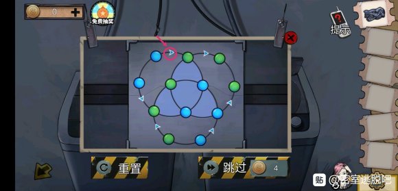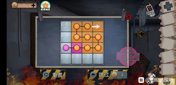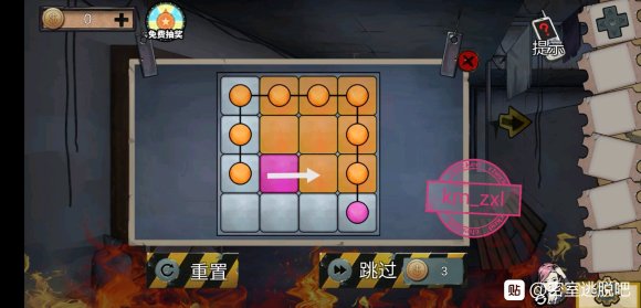 先点“重置”键,然后以橙色珠子那边为开头,粉色珠子为尾,顺棋盘边上绕圈(如下图1白箭头所示)。