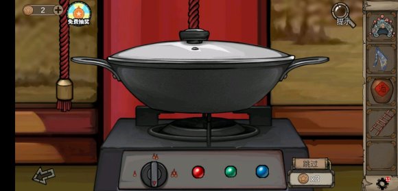 先点火炉开关,出现白色进度条时,看上面移动的图形,是拉绳就点左边的拉绳,是红圈就点煤气灶上的红色按钮,是绿色圆圈就点绿色按钮……,以此类推点完就熬好酒了。