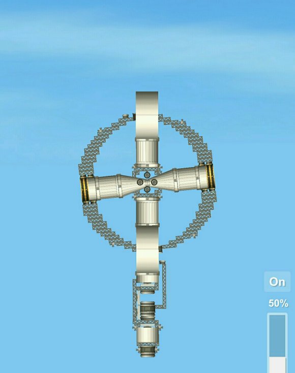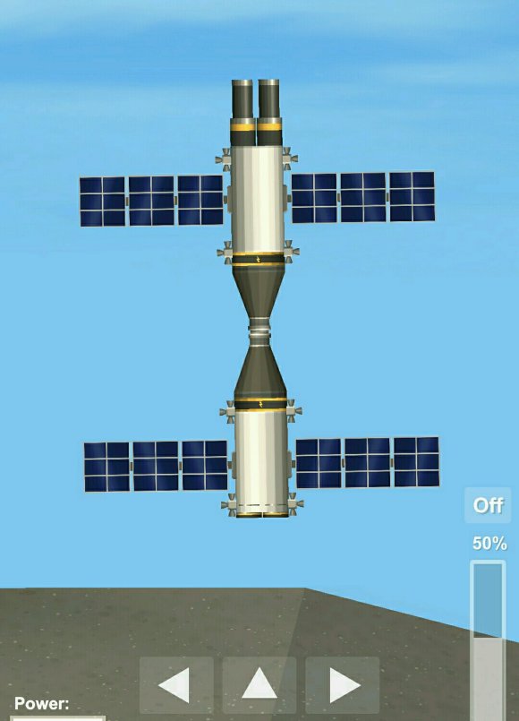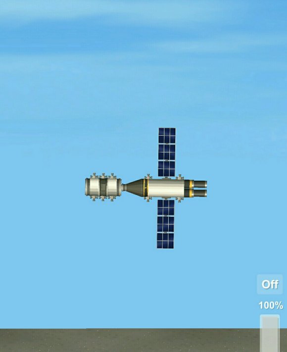 探测器甲(图1),可以看到电推已经被修改,空间站乙(图2)请自行脑补它是一个空间站。无重力测试中,甲主动靠近乙,对接成功,电推没有变短(图3),如果是乙对接甲(甲被动对接乙),就会……(图4)
