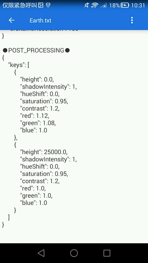航天模拟器的文件夹→files→Resources→Planet Data(行星文档)→Earth(地球的文档)→滑到最下面,改动两个 shadowIntensity的项后面的数字,改为0就是全白,改为1食用最香。