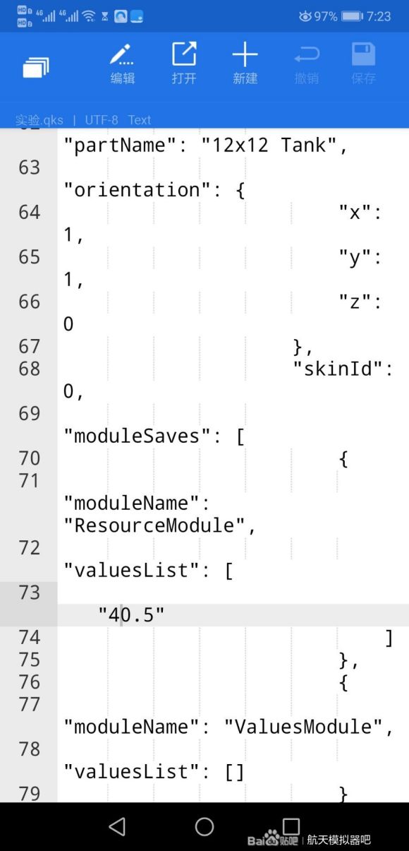 燃料箱的valueslist项是此燃料箱在这个存档中的燃料剩余值,1单位=2吨燃料(图中的大型燃料箱里有40.5*2=81吨燃料)。这个值不受燃料箱最大容量的限制,你可以让一个4*2的小燃料箱装上1000吨的燃料,这样地图左下角表示燃料剩余的白条将会超出边框,燃料箱的爆炸威力也会大大增强。PS:你装多少燃料,燃料箱就有多重