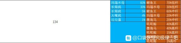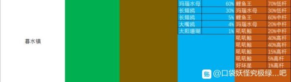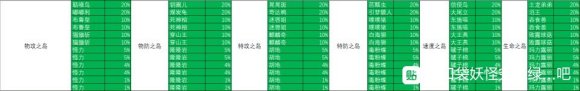 每个岛分布图最上面的精灵是1努力值,最下面的是3努力值,中间三只是2努力值。
