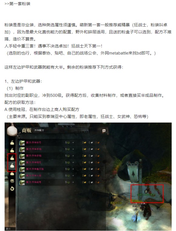 毕业装是粉字的升华装备和紫字的传奇装备,它们比橙装高5%的属性。紫装是肝物,主要为了亮晶晶,属性和粉装一样。粉装可以通过制作、地图牌子换、桂冠换、碎层换、pvpwvw换、公会奖状换、史诗成就送、一折商城买。bd配装可到泰瑞亚协会查,都是大佬们讨论实践下来的,比较合适。