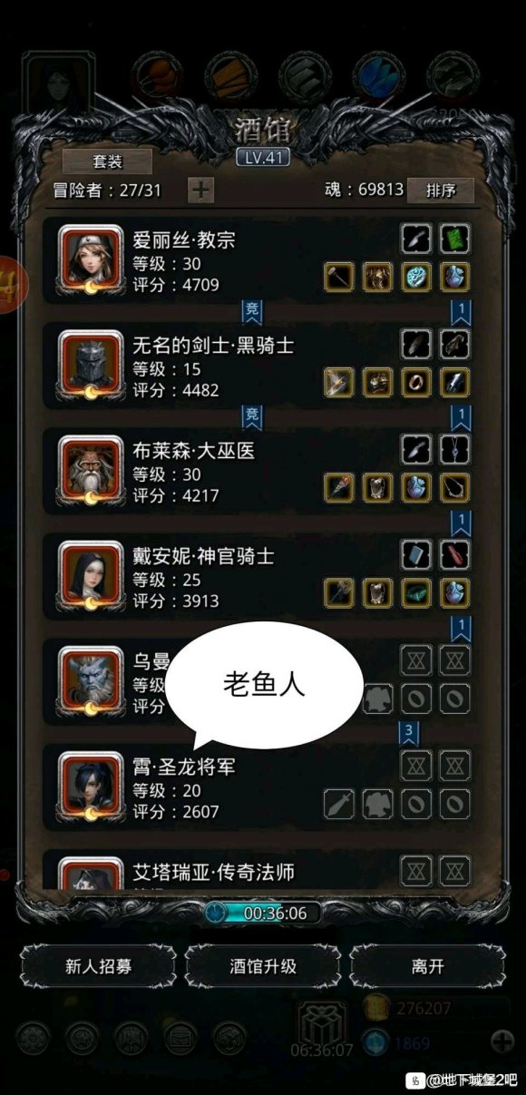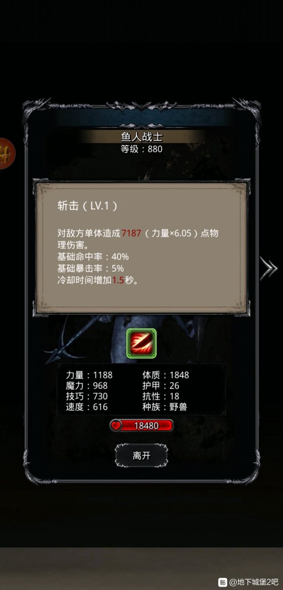 老鱼人阵容打法:(老鱼人技能嘲讽+反击+高额aoe物理群伤,命中5。由于前两个技能cd极长,只有黑骑控制一两次则不会攻击)