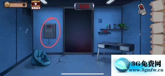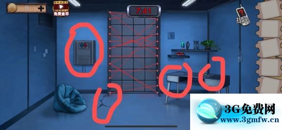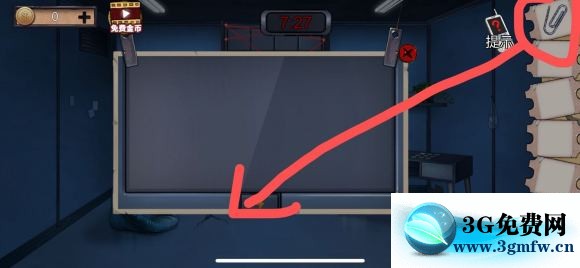 2:点开左边的大型游戏门锁,用回针去把卡进去的开关别出来。(然后进行游戏,这个游戏很简单 不停的换位置就好了)