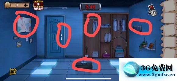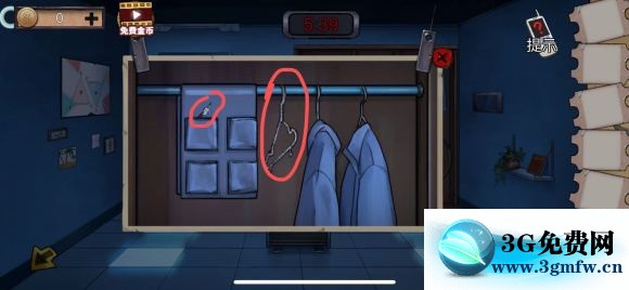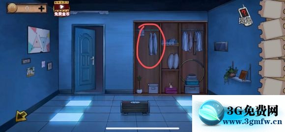 1:右边衣柜左边的两件衣服点它,之后拿走闲置的衣服和兜里那半个钳子。