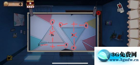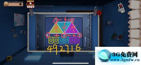 3:点击第二排的简易保险箱,根据报纸上提示的走向直接可以知道第二个密码就是2!!其余的书写了一遍后得知密码为5206,打开后获得一枚金币。