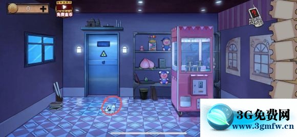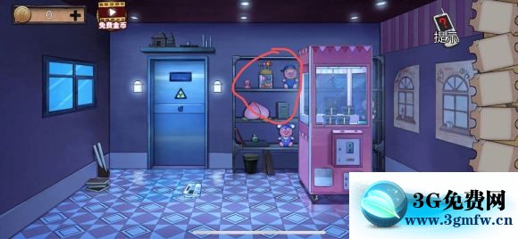 3:点击娃娃机的下半身,将金币投入到娃娃机中,亮了以后,在点击娃娃机的上半身,将棒棒糖插在缺失摇杆的位置,出现了摇杆操纵。