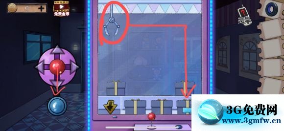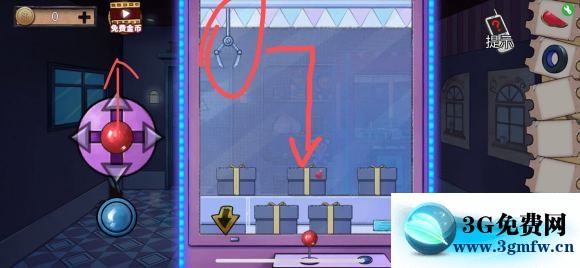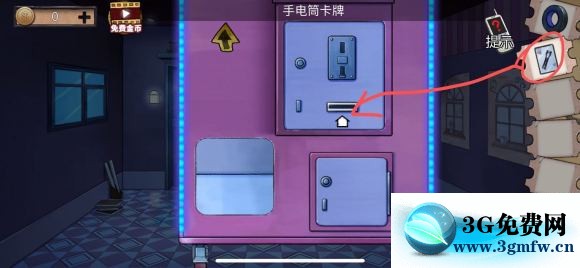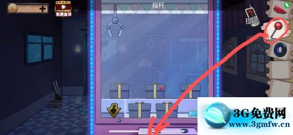 2:再次点击娃娃机的下半身,将手电筒照召唤卡插入进去,然后点击上半身接着抓,还是先将操纵杆向下拉,抓头变大后抓下一层的手电筒盒子,然后得到手电。