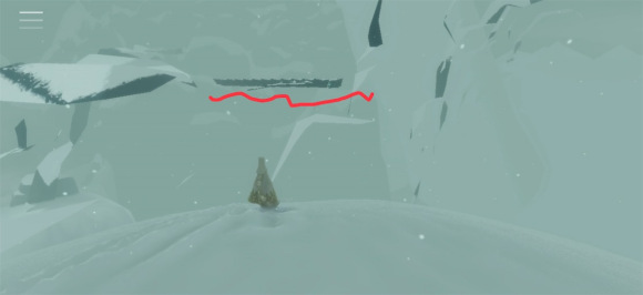 爬的时候请注意观察周围的环境,偏离路线会有结冻的危险,冻住以后角色就失去爬山的能力了,等于你前面的努力都白费了。请注意观察上方的乱七八糟的bug贴图,找到下面这个缺口↓ 特征明显挺好找的