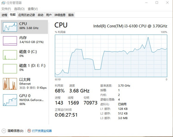 然后切回桌面 在任务栏右键打开任务管理器-性能