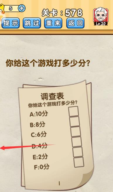 你给这个游戏打多少分是《脑洞先生》第578关的问题,很多网友不知道答案是什么,下面小编给大家带来脑洞先生第578关攻略。