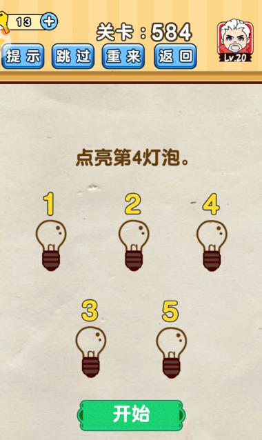 点亮第4灯泡是《脑洞先生》第584关的问题,很多网友不知道答案是什么,下面小编给大家带来脑洞先生第584关攻略。