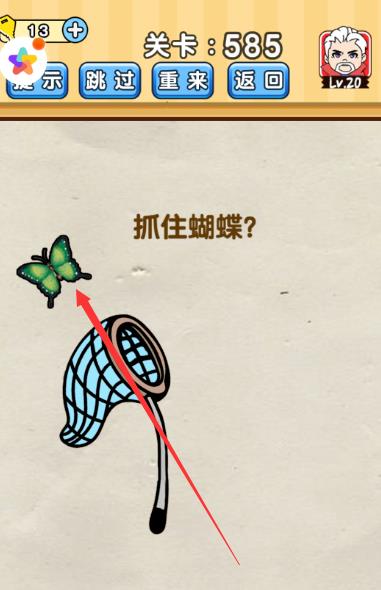 抓住蝴蝶是《脑洞先生》第585关的问题,很多网友不知道答案是什么,下面小编给大家带来脑洞先生第585关攻略。 问题:抓住蝴蝶? 答案:蝴蝶出现时,用手指点击它即可。 老友网www.andlaou.com免费为你分享