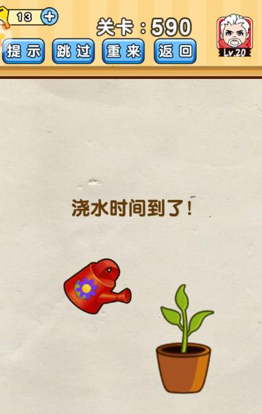 浇水时间到了是《脑洞先生》第590关的问题,很多网友不知道答案是什么,下面小编给大家带来脑洞先生第590关攻略。 问题:浇水时间到了? 答案:手机向右转倾斜,这样水壶里的水就能浇花了。 老友网www.andlaou.com免费为你分享