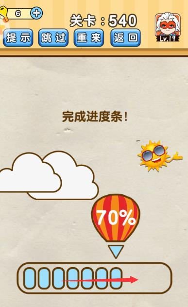 完成进度条是《脑洞先生》第540关的问题,很多网友不知道答案是什么,下面小编给大家带来脑洞先生第540关攻略。 问题:完成进度条? 答案:拖动隐藏的进度条往前即可。 老友网www.andlaou.com免费为你分享