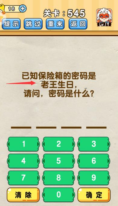 已知保险箱的密码是老王生日,请问,密码是什么是《脑洞先生》第545关的问题,很多网友不知道答案是什么,下面小编给大家带来脑洞先生第545关攻略。