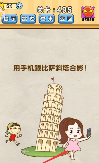 用手机和比萨斜塔合影是《脑洞先生》第495关的问题,很多网友不知道答案是什么,下面小编给大家带来脑洞先生第495关攻略。 问题:用手机和比萨斜塔合影? 答案:滑动小姐姐即可。 老友网www.andlaou.com免费为你分享