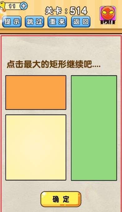 点击最大的最大的矩形继续吧是《脑洞先生》第514关的问题,很多网友不知道答案是什么,下面小编给大家带来脑洞先生第514关攻略。