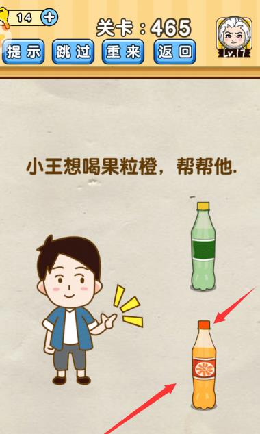 小王想喝果粒橙,帮帮他是《脑洞先生》第465关的问题,很多网友不知道答案是什么,下面小编给大家带来脑洞先生第465关攻略。