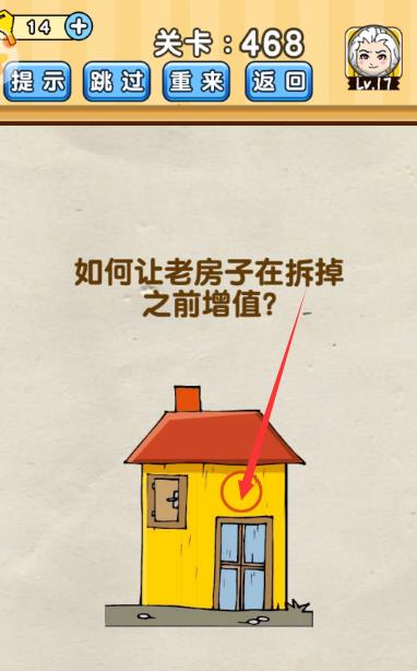 如何让老房子在拆掉之前增值是《脑洞先生》第468关的问题,很多网友不知道答案是什么,下面小编给大家带来脑洞先生第468关攻略。