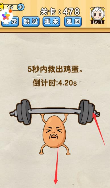 5秒内救出鸡蛋,倒计时:4.20S是《脑洞先生》第478关的问题,很多网友不知道答案是什么,下面小编给大家带来脑洞先生第478关攻略。