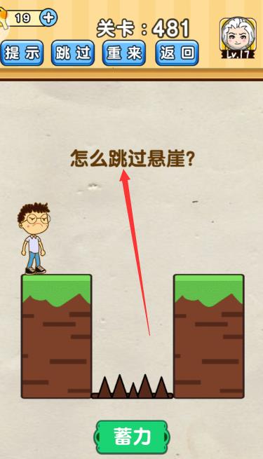 怎么跳过悬崖是《脑洞先生》第481关的问题,很多网友不知道答案是什么,下面小编给大家带来脑洞先生第481关攻略。 问题:怎么跳过悬崖? 答案:点击题目中的“跳过”即可。 老友网www.andlaou.com免费为你分享