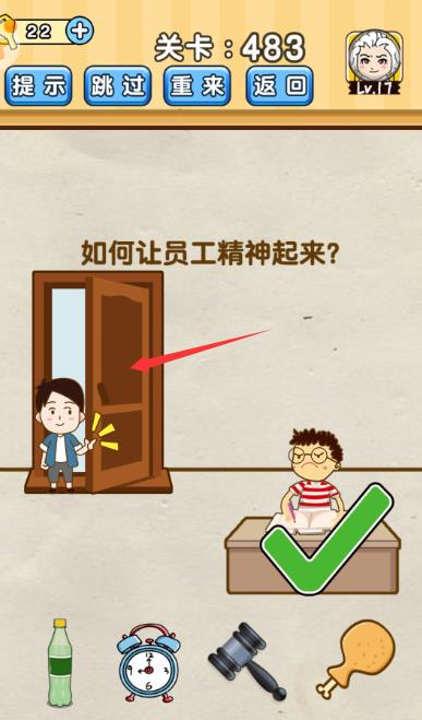 如何让员工精神起来是《脑洞先生》第483关的问题,很多网友不知道答案是什么,下面小编给大家带来脑洞先生第483关攻略。 问题:如何让员工精神起来? 答案:把门打开,老板进来了,能不精神嘛。 老友网www.andlaou.com免费为你分享