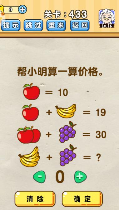 帮小明算一下价格是《脑洞先生》第433关的问题,很多网友不知道答案是什么,下面小编给大家带来脑洞先生第433关攻略。