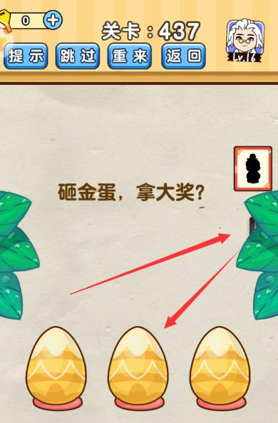 砸金蛋,拿大奖是《脑洞先生》第437关的问题,很多网友不知道答案是什么,下面小编给大家带来脑洞先生第437关攻略。 问题:砸金蛋,拿大奖? 答案:锤子藏在草丛里,拖出来砸蛋就可以了。 老友网www.andlaou.com免费为你分享