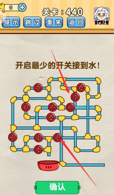 开启最少的开关接到水是《脑洞先生》第440关的问题,很多网友不知道答案是什么,下面小编给大家带来脑洞先生第440关攻略。 问题:开启最少的开关接到水? 答案:虽然看得眼花缭乱,但是只要2个开关即可。 老友网www.andlaou.com免费为你分享