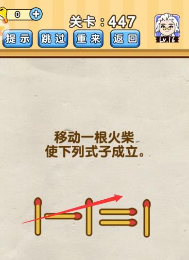 移动一根火柴,使下列式子成立是《脑洞先生》第447关的问题,很多网友不知道答案是什么,下面小编给大家带来脑洞先生第447关攻略。