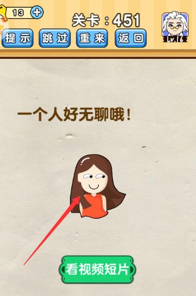 一个人好无聊哦是《脑洞先生》第451关的问题,很多网友不知道答案是什么,下面小编给大家带来脑洞先生第451关攻略。