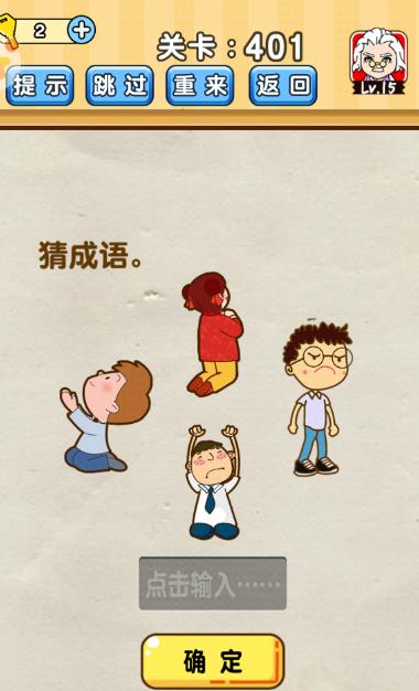 看图猜成语是《脑洞先生》第401关的问题,很多网友不知道答案是什么,下面小编给大家带来脑洞先生第401关攻略。 问题:看图猜成语? 答案:东方不败(拜),四个方位都有人,只有三个方位的人是跪拜着。 老友网www.andlaou.com免费为你分享
