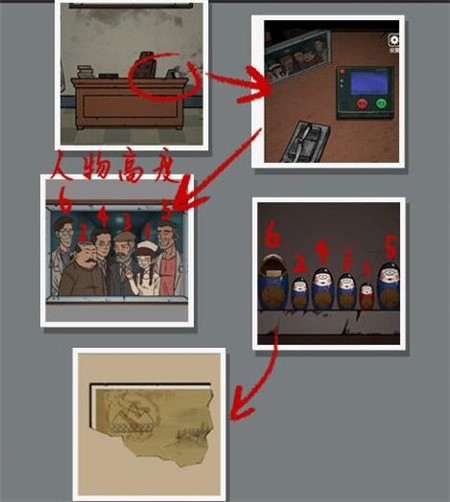 来到桌边,打开合照,根据合照中人物的高度去移动套娃位置,获得明信片碎片5。