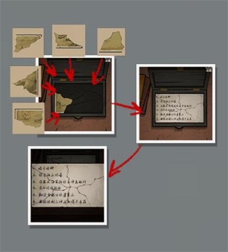 将所有的明信片放到桌上的盒子里,合成一张完整的明信片,获得地图线路线索。