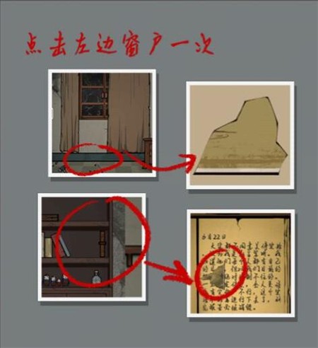 点击左边窗帘一次,拾取明信片碎片1;查看院长日记,在最后一页获得明信片3。