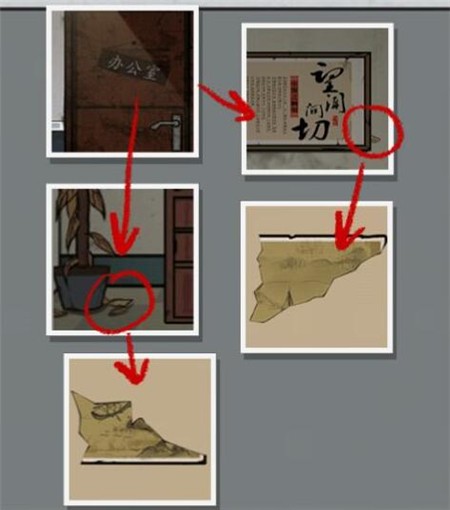 进入办公室后,在望闻问切牌遍后拾取明信片碎片4,植物处获得明信片2。