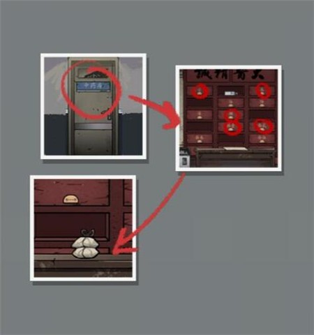 打开中药室的门,根据卡片提示,挑选5种对应的药物打包好后拾取。
